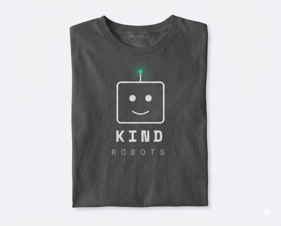 The Kind Robots logo tee in a light colorway. Same soft cotton blend, lighter aesthetic. Great for sunny days.
