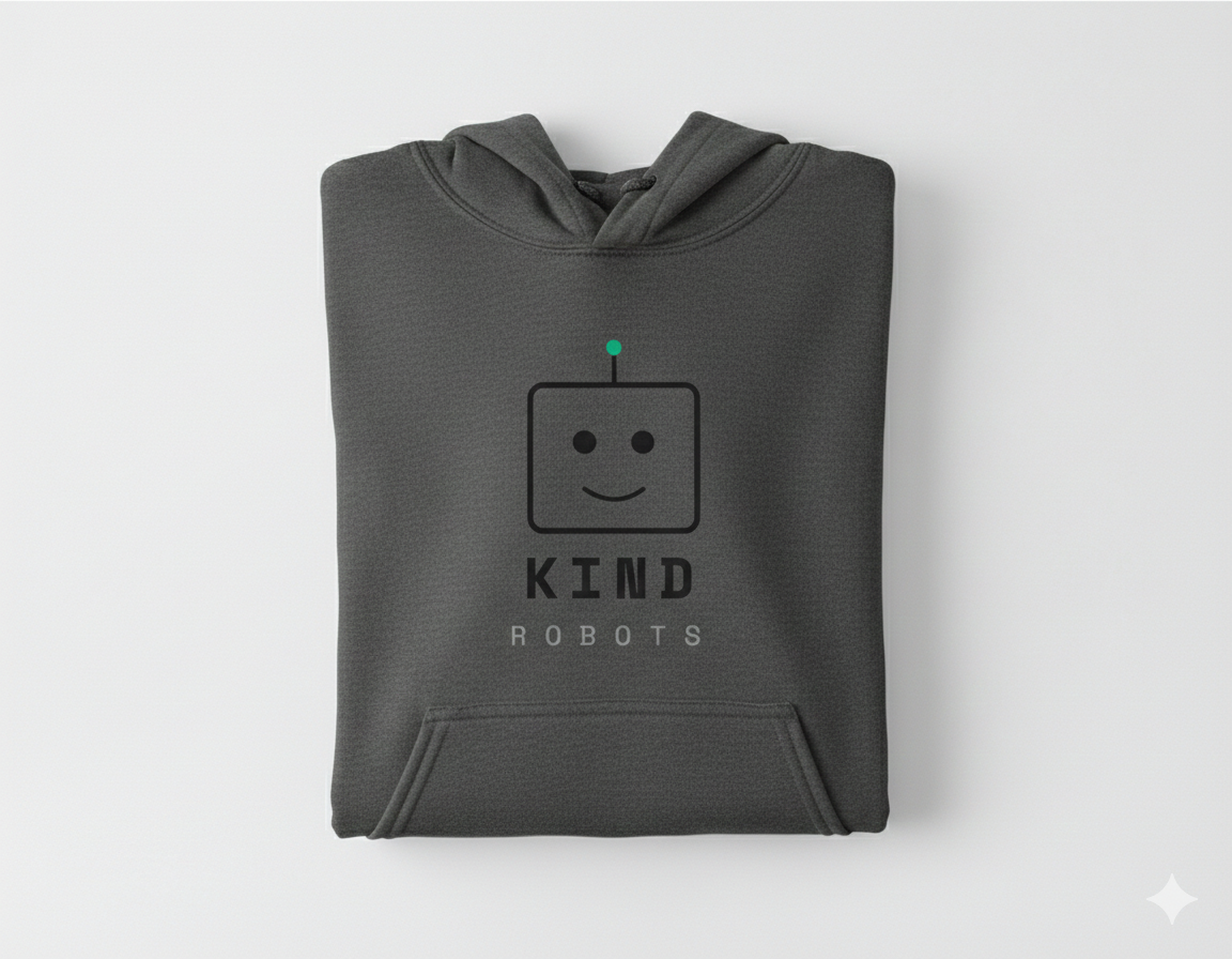 Stay warm with the Kind Robots pullover hoodie. Features the stacked logo on the chest. Heavy-weight fleece with a kangaroo pocket.